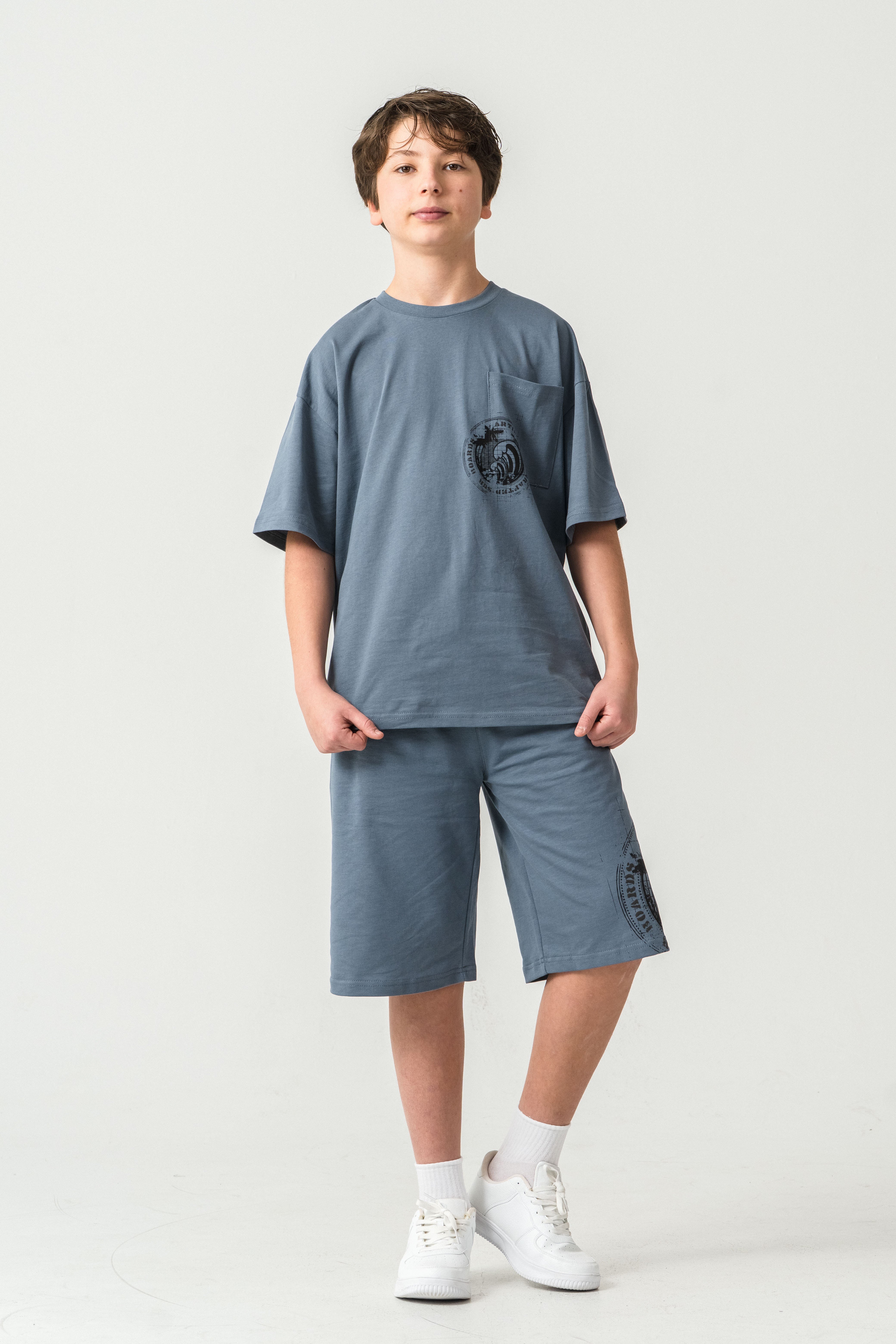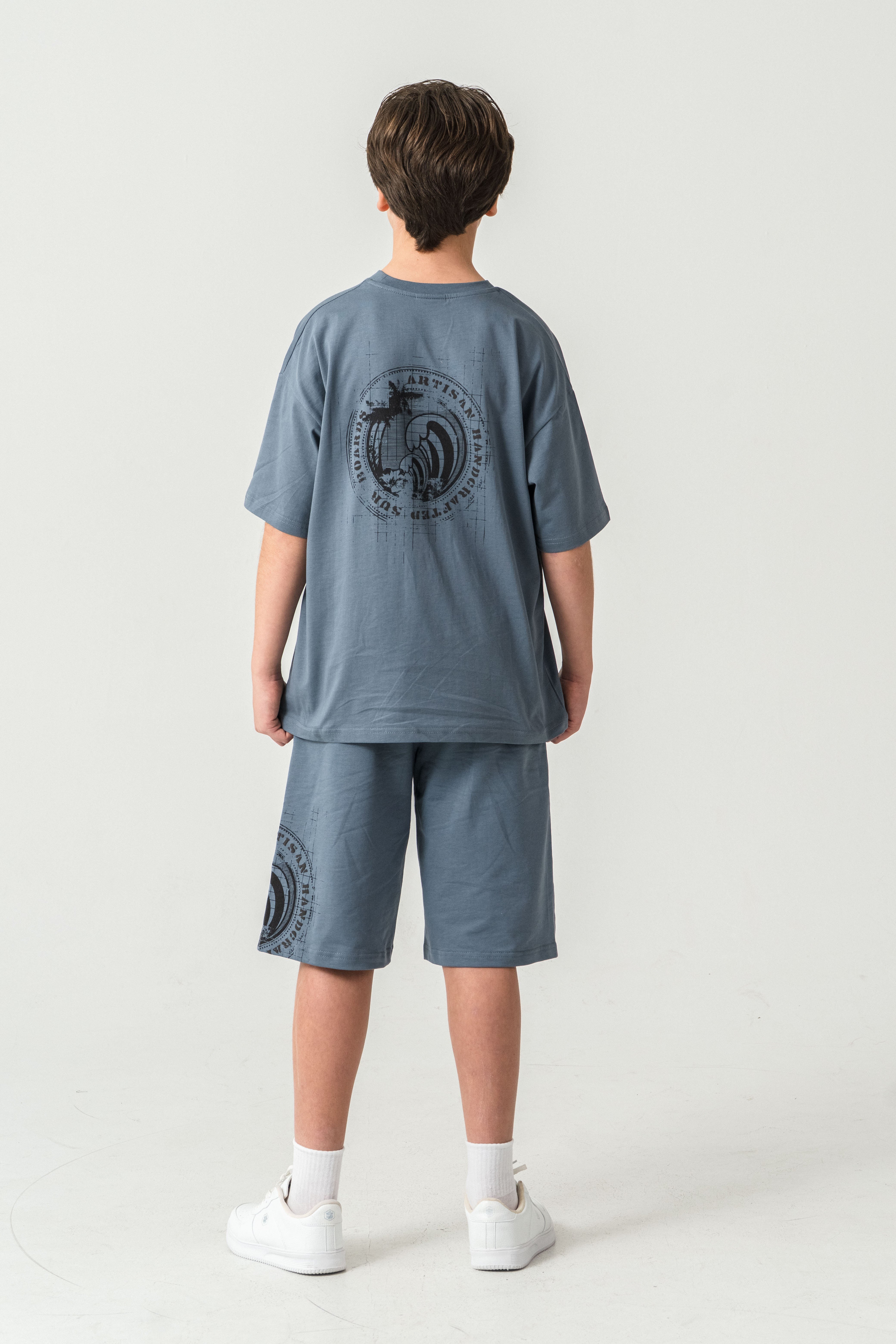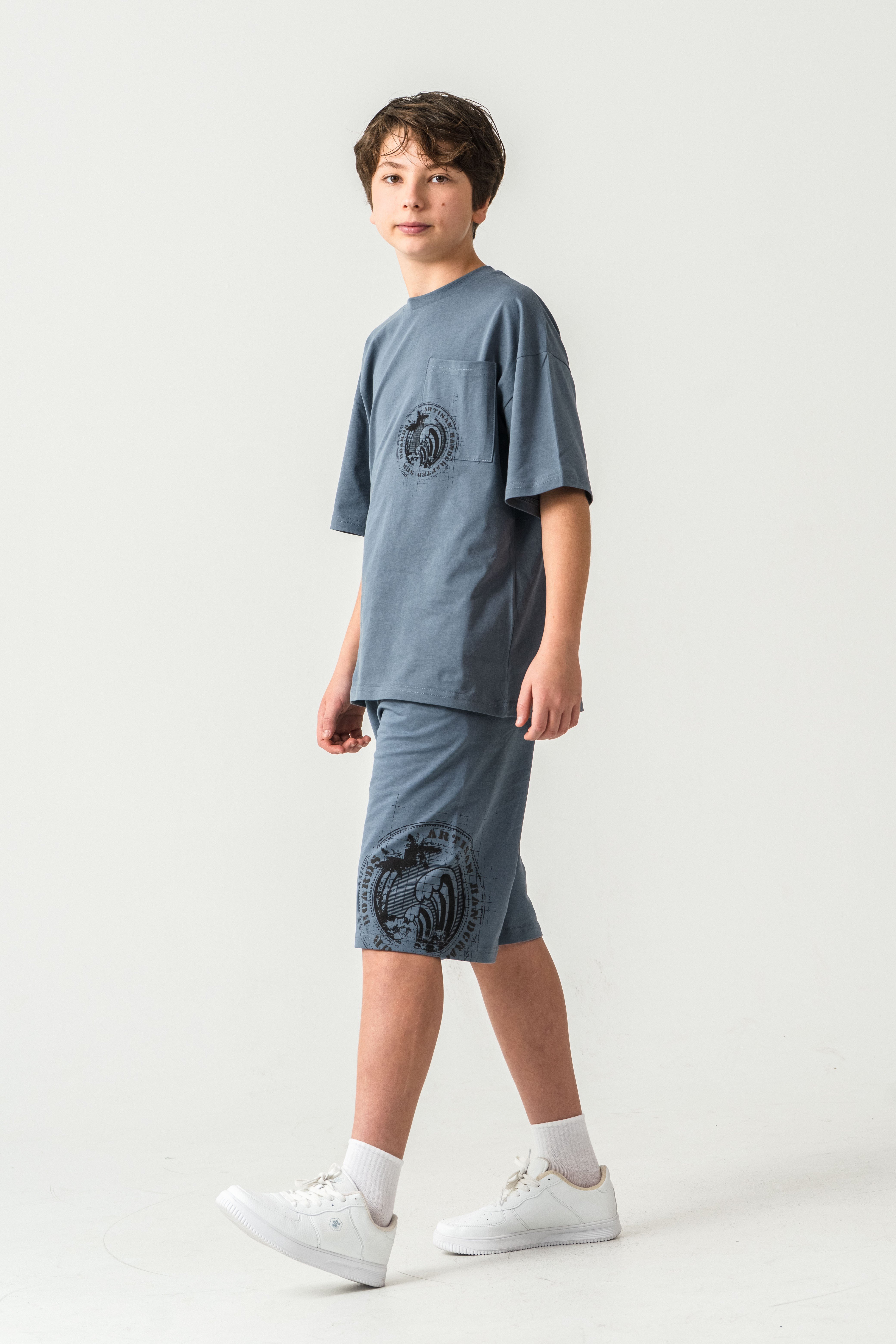 Ust Cepli Ust Cep Baskılı Arka Baskılı Erkek Çocuk Şort - Tişört Takımı